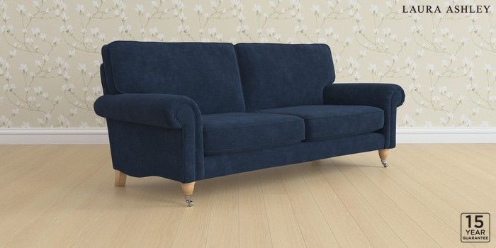 6.12.1 Buy Kingston by Laura Ashley 3 Seater Sofa Alwyn Velvet Midnight Navy Low Chrome Castor - Light Oak from the Laura Ashley online shop Click here to use our website with more accessibility support, for example screen readers