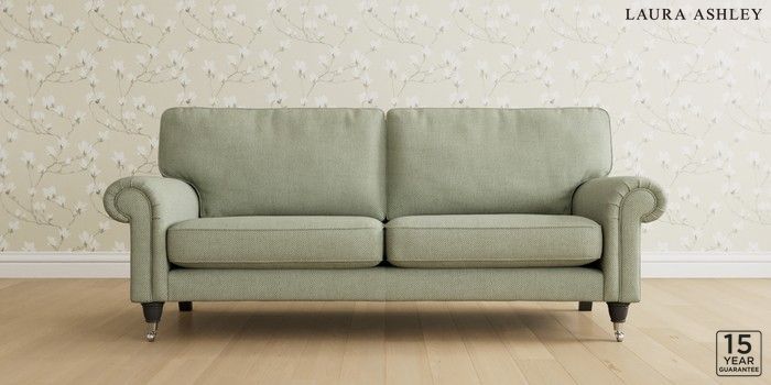 6.12.1 Buy Kingston by Laura Ashley 3 Seater Sofa Anneliese Sage Green Low Chrome Castor - Black from the Laura Ashley online shop Click here to use our website with more accessibility support, for example screen readers