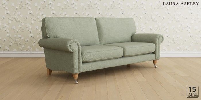 6.12.1 Buy Kingston by Laura Ashley 3 Seater Sofa Anneliese Sage Green Low Chrome Castor - Light Oak from the Laura Ashley online shop Click here to use our website with more accessibility support, for example screen readers