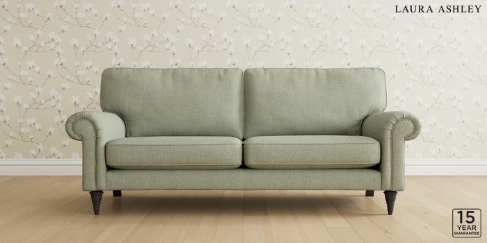 6.12.13 Buy Kingston by Laura Ashley 3 Seater Sofa Anneliese Sage Green Low Turned - Black from the Laura Ashley online shop Click here to use our website with more accessibility support, for example screen readers