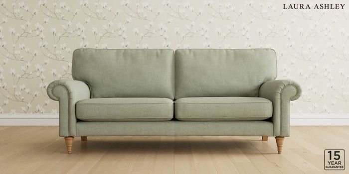 6.12.1 Buy Kingston by Laura Ashley 3 Seater Sofa Anneliese Sage Green Low Turned - Light Oak from the Laura Ashley online shop Click here to use our website with more accessibility support, for example screen readers