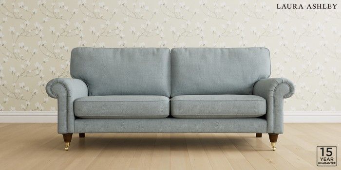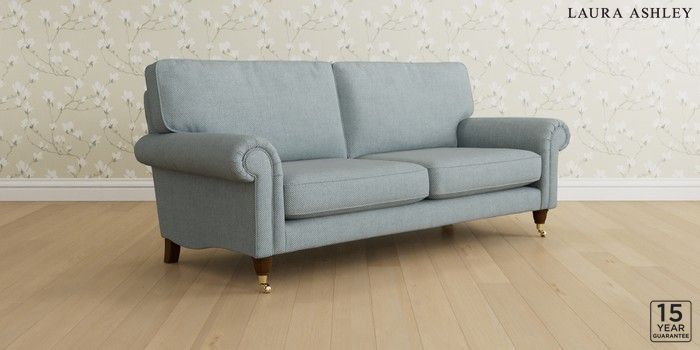 6.12.1 Buy Kingston by Laura Ashley 3 Seater Sofa Anneliese Seaspray Blue Low Brass Castor - Teak from the Laura Ashley online shop Click here to use our website with more accessibility support, for example screen readers