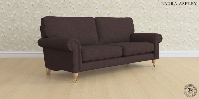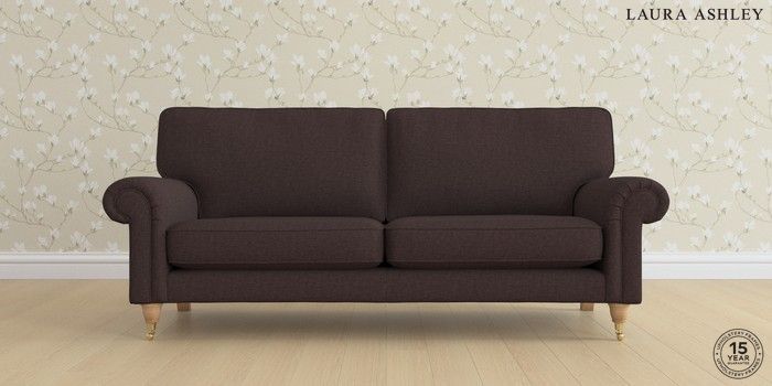 7.0.3 Buy Kingston by Laura Ashley 3 Seater Sofa Bainton Chocolate Brown Low Brass Castor - Light Oak from the Laura Ashley online shop Click here to use our website with more accessibility support, for example screen readers
