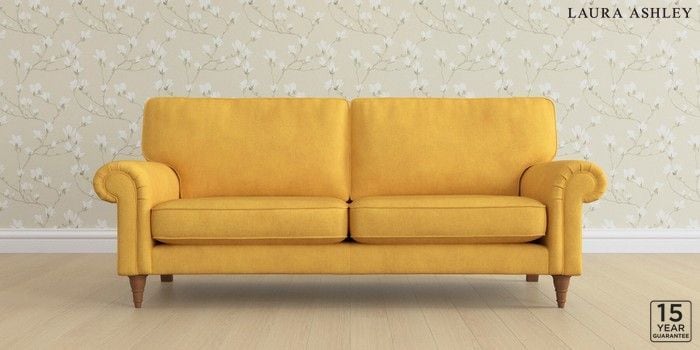 6.12.1 Buy Kingston by Laura Ashley 3 Seater Sofa Bainton Ochre Yellow Low Turned - Teak from the Laura Ashley online shop Click here to use our website with more accessibility support, for example screen readers