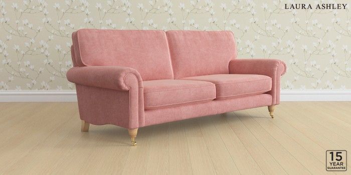 6.12.1 Buy Kingston by Laura Ashley 3 Seater Sofa Bainton Old Rose Pink Low Brass Castor - Light Oak from the Laura Ashley online shop Click here to use our website with more accessibility support, for example screen readers