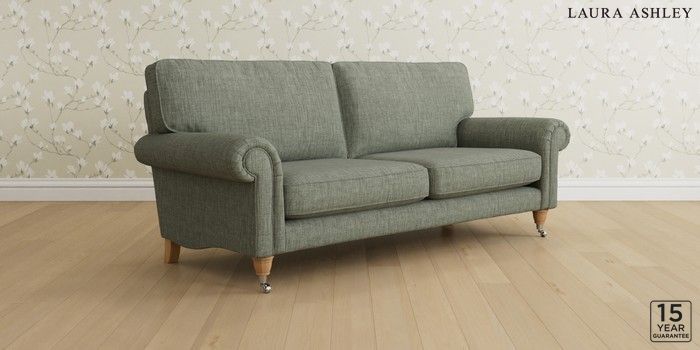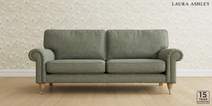 6.12.1 Buy Kingston by Laura Ashley 3 Seater Sofa Bainton Sage Green Low Chrome Castor - Light Oak from the Laura Ashley online shop Click here to use our website with more accessibility support, for example screen readers