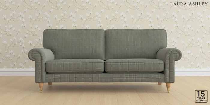 6.12.1 Buy Kingston by Laura Ashley 3 Seater Sofa Birchgrove Check Olive Green Low Brass Castor - Light Oak from the Laura Ashley online shop Click here to use our website with more accessibility support, for example screen readers