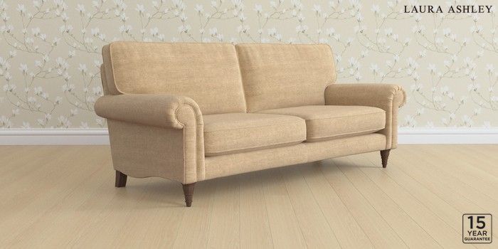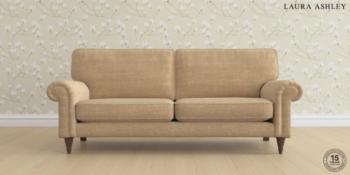6.12.1 Buy Kingston by Laura Ashley 3 Seater Sofa Edwin Chenille Gold Natural Low Turned - Chestnut from the Laura Ashley online shop Click here to use our website with more accessibility support, for example screen readers