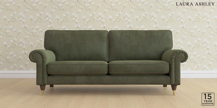 6.12.1 Buy Kingston by Laura Ashley 3 Seater Sofa Edwin Chenille Hedgerow Green Low Brass Castor - Chestnut from the Laura Ashley online shop Click here to use our website with more accessibility support, for example screen readers