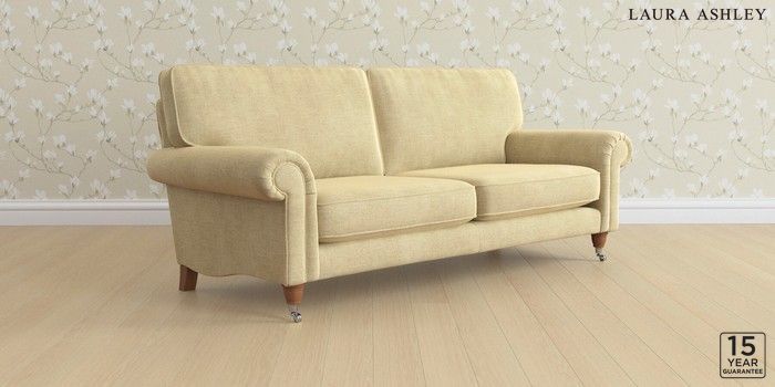 6.12.1 Buy Kingston by Laura Ashley 3 Seater Sofa Edwin Chenille Truffle Natural Low Chrome Castor - Teak from the Laura Ashley online shop Click here to use our website with more accessibility support, for example screen readers