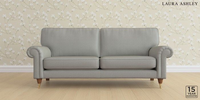 6.12.13 Buy Kingston by Laura Ashley 3 Seater Sofa Edwin Herringbone Pale Steel Grey Low Brass Castor - Teak from the Laura Ashley online shop Click here to use our website with more accessibility support, for example screen readers