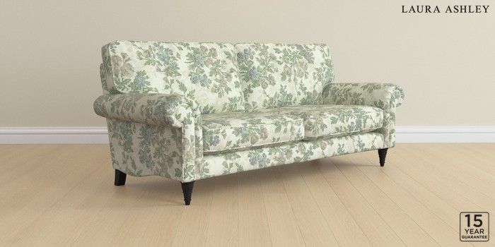 6.12.13 Buy Kingston by Laura Ashley 3 Seater Sofa Ellerby Seaspray Blue Low Turned - Black from the Laura Ashley online shop Click here to use our website with more accessibility support, for example screen readers