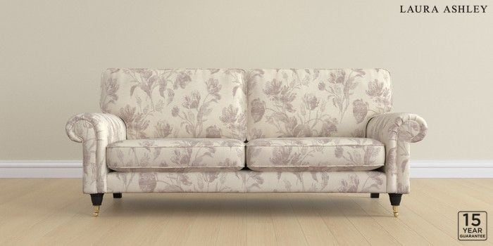 6.12.13 Buy Kingston by Laura Ashley 3 Seater Sofa Gosford Weave Dusky Plum Purple Low Brass Castor - Black from the Laura Ashley online shop Click here to use our website with more accessibility support, for example screen readers