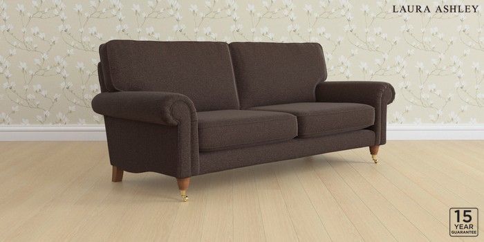 6.12.13 Buy Kingston by Laura Ashley 3 Seater Sofa Harley Chestnut Brown Low Brass Castor - Teak from the Laura Ashley online shop Click here to use our website with more accessibility support, for example screen readers