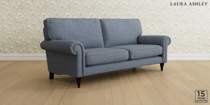 6.12.1 Buy Kingston by Laura Ashley 3 Seater Sofa Harley Seaspray Blue Low Turned - Chestnut from the Laura Ashley online shop Click here to use our website with more accessibility support, for example screen readers