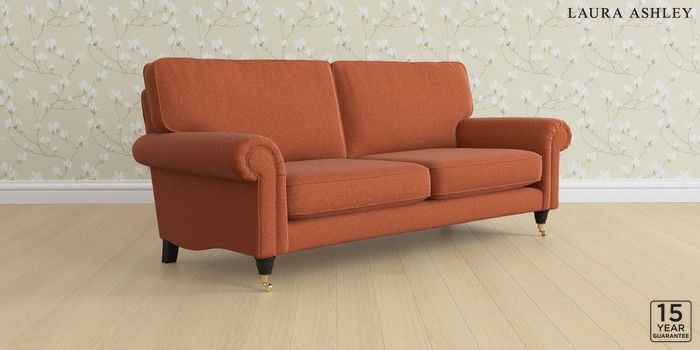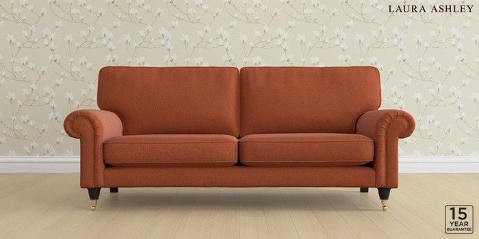 6.12.13 Buy Kingston by Laura Ashley 3 Seater Sofa Harley Terracotta Orange Low Brass Castor - Black from the Laura Ashley online shop Click here to use our website with more accessibility support, for example screen readers