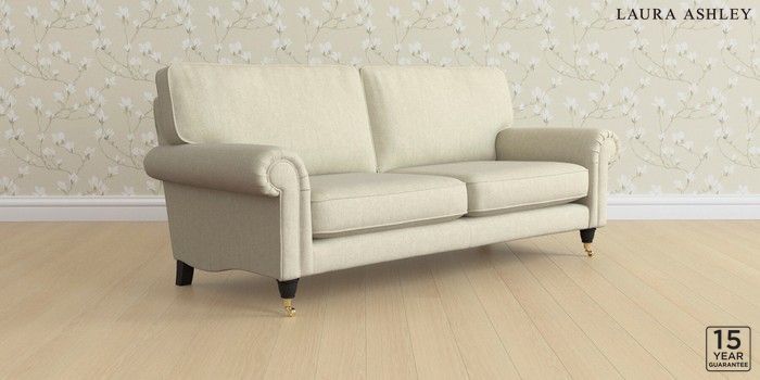 6.12.1 Buy Kingston by Laura Ashley 3 Seater Sofa Kinsham Natural Low Brass Castor - Black from the Laura Ashley online shop Click here to use our website with more accessibility support, for example screen readers