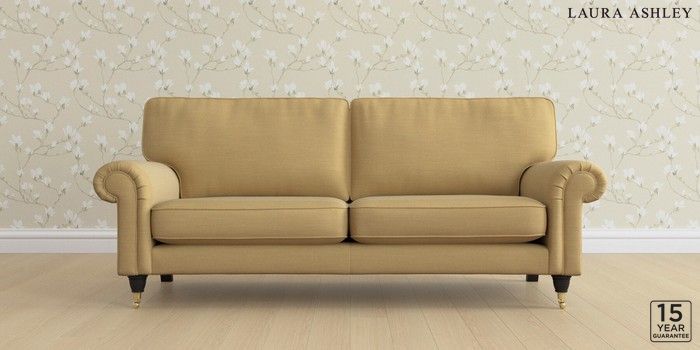 6.12.1 Buy Kingston by Laura Ashley 3 Seater Sofa Kinsham Ochre Yellow Low Brass Castor - Black from the Laura Ashley online shop Click here to use our website with more accessibility support, for example screen readers