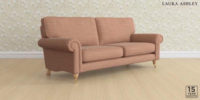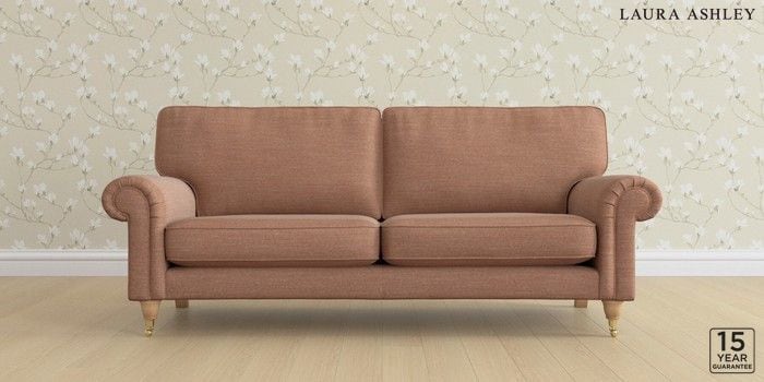 6.12.1 Buy Kingston by Laura Ashley 3 Seater Sofa Kinsham Rust Orange Low Brass Castor - Light Oak from the Laura Ashley online shop Click here to use our website with more accessibility support, for example screen readers