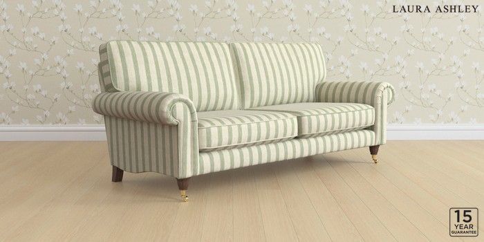 6.12.13 Buy Kingston by Laura Ashley 3 Seater Sofa Kinsham Stripe Hedgerow Green Low Brass Castor - Chestnut from the Laura Ashley online shop Click here to use our website with more accessibility support, for example screen readers
