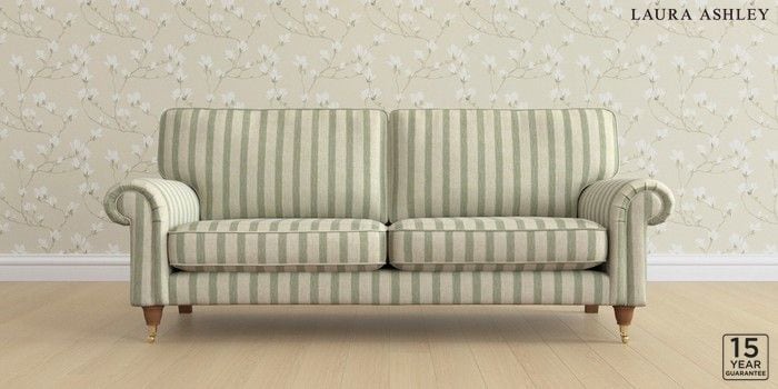 6.12.13 Buy Kingston by Laura Ashley 3 Seater Sofa Kinsham Stripe Hedgerow Green Low Brass Castor - Teak from the Laura Ashley online shop Click here to use our website with more accessibility support, for example screen readers