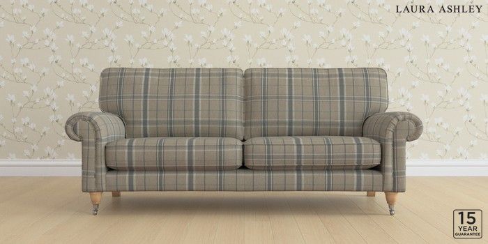 6.12.13 Buy Kingston by Laura Ashley 3 Seater Sofa Longstowe Check French Grey Low Chrome Castor - Light Oak from the Laura Ashley online shop Click here to use our website with more accessibility support, for example screen readers