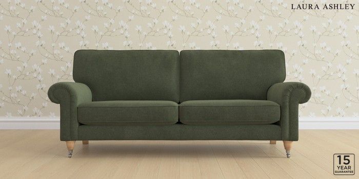 6.12.13 Buy Kingston by Laura Ashley 3 Seater Sofa Lundar Chenille Ivy Green Low Chrome Castor - Light Oak from the Laura Ashley online shop Click here to use our website with more accessibility support, for example screen readers