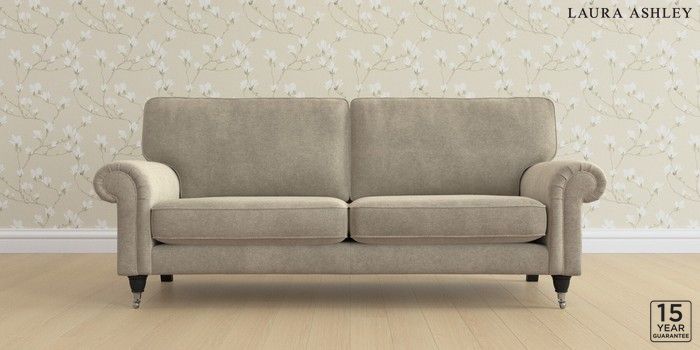 6.12.1 Buy Kingston by Laura Ashley 3 Seater Sofa Lundar Chenille Truffle Natural Low Chrome Castor - Black from the Laura Ashley online shop Click here to use our website with more accessibility support, for example screen readers