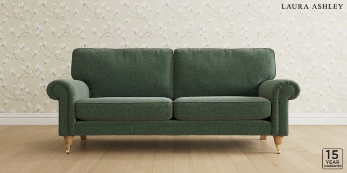 6.12.1 Buy Kingston by Laura Ashley 3 Seater Sofa Nantmor Fern Green Low Brass Castor - Light Oak from the Laura Ashley online shop Click here to use our website with more accessibility support, for example screen readers