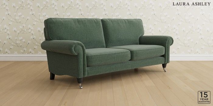 6.12.13 Buy Kingston by Laura Ashley 3 Seater Sofa Nantmor Fern Green Low Chrome Castor - Black from the Laura Ashley online shop Click here to use our website with more accessibility support, for example screen readers