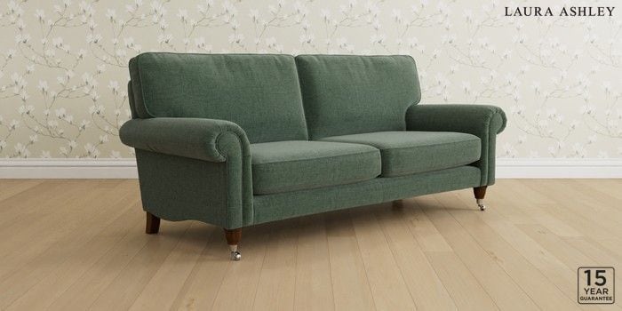 6.12.13 Buy Kingston by Laura Ashley 3 Seater Sofa Nantmor Fern Green Low Chrome Castor - Teak from the Laura Ashley online shop Click here to use our website with more accessibility support, for example screen readers