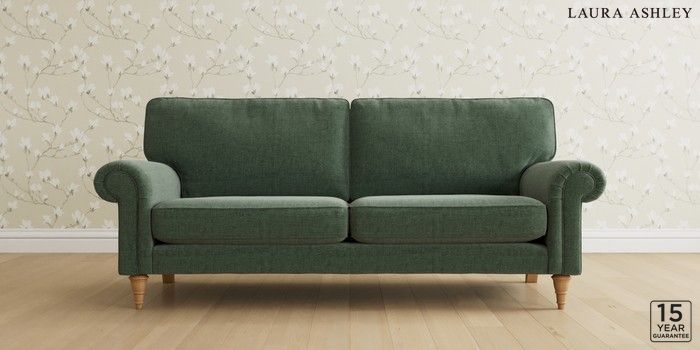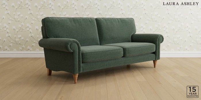 6.12.13 Buy Kingston by Laura Ashley 3 Seater Sofa Nantmor Fern Green Low Turned - Light Oak from the Laura Ashley online shop Click here to use our website with more accessibility support, for example screen readers
