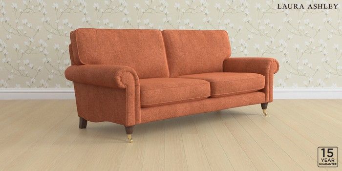 6.12.1 Buy Kingston by Laura Ashley 3 Seater Sofa Nantmor Rust Orange Low Brass Castor - Chestnut from the Laura Ashley online shop Click here to use our website with more accessibility support, for example screen readers