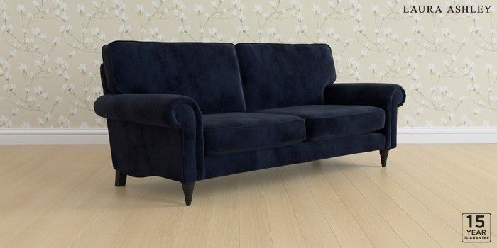 6.12.1 Buy Kingston by Laura Ashley 3 Seater Sofa Orla Midnight Navy Low Turned - Black from the Laura Ashley online shop Click here to use our website with more accessibility support, for example screen readers