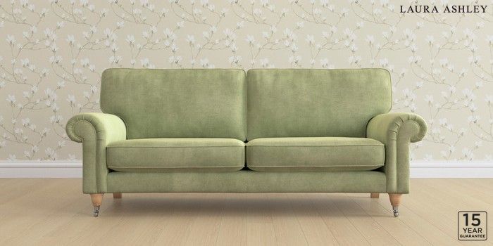6.12.1 Buy Kingston by Laura Ashley 3 Seater Sofa Orla Pale Hedgerow Green Low Chrome Castor - Light Oak from the Laura Ashley online shop Click here to use our website with more accessibility support, for example screen readers