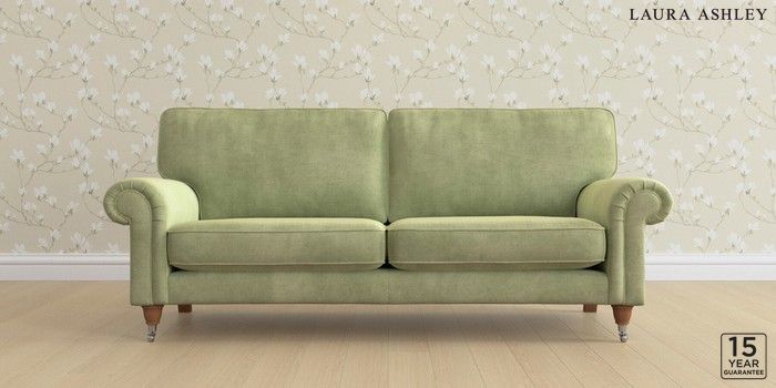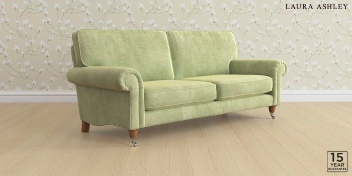 6.12.1 Buy Kingston by Laura Ashley 3 Seater Sofa Orla Pale Hedgerow Green Low Chrome Castor - Teak from the Laura Ashley online shop Click here to use our website with more accessibility support, for example screen readers