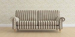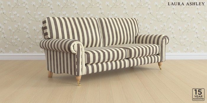 6.12.1 Buy Kingston by Laura Ashley 3 Seater Sofa Orla Stripe Dark Truffle Natural Low Brass Castor - Light Oak from the Laura Ashley online shop Click here to use our website with more accessibility support, for example screen readers