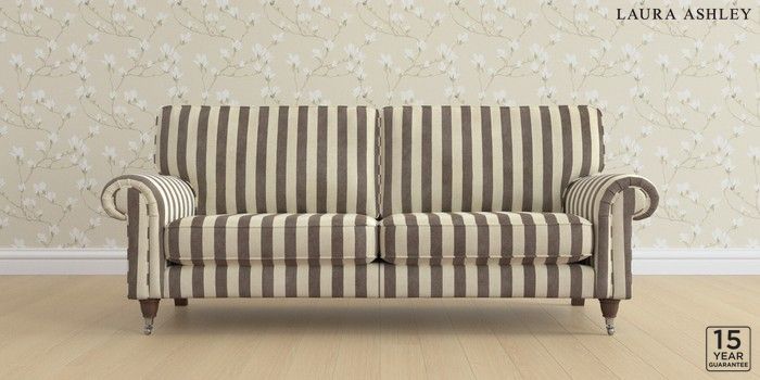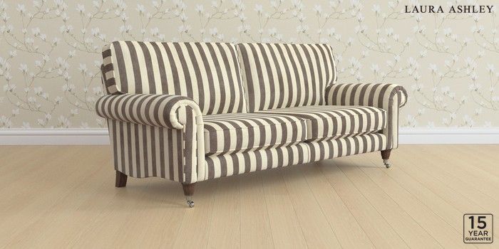 6.12.1 Buy Kingston by Laura Ashley 3 Seater Sofa Orla Stripe Dark Truffle Natural Low Chrome Castor - Chestnut from the Laura Ashley online shop Click here to use our website with more accessibility support, for example screen readers