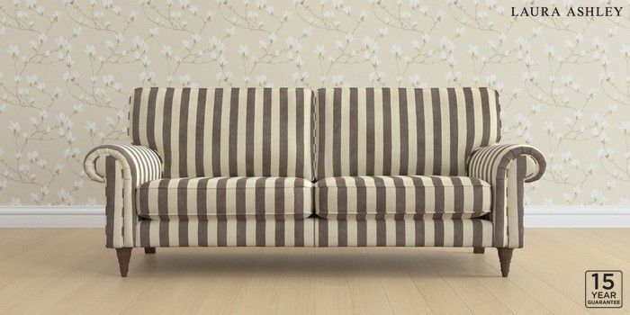 6.12.1 Buy Kingston by Laura Ashley 3 Seater Sofa Orla Stripe Dark Truffle Natural Low Turned - Chestnut from the Laura Ashley online shop Click here to use our website with more accessibility support, for example screen readers