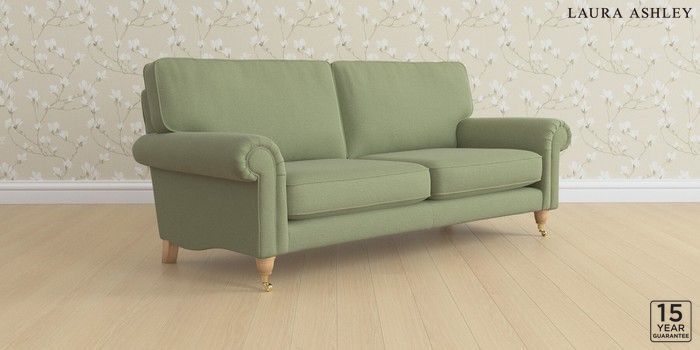 6.12.1 Buy Kingston by Laura Ashley 3 Seater Sofa Peyton Hedgerow Green Low Brass Castor - Light Oak from the Laura Ashley online shop Click here to use our website with more accessibility support, for example screen readers