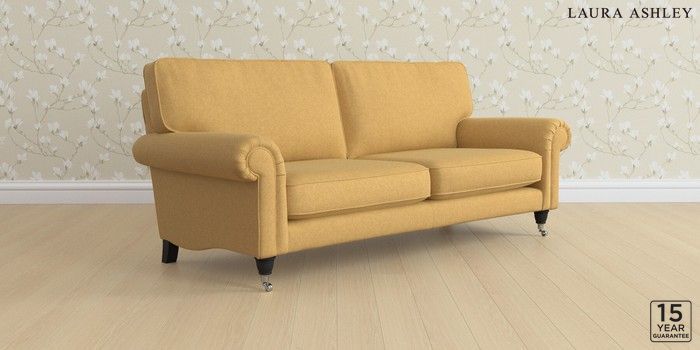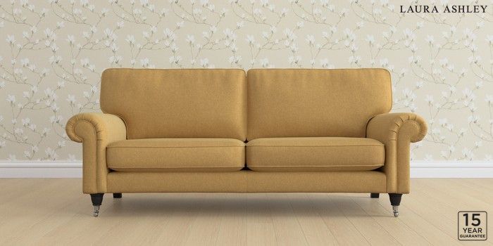 6.12.1 Buy Kingston by Laura Ashley 3 Seater Sofa Peyton Ochre Yellow Low Chrome Castor - Black from the Laura Ashley online shop Click here to use our website with more accessibility support, for example screen readers