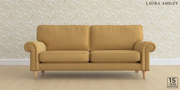 6.12.1 Buy Kingston by Laura Ashley 3 Seater Sofa Peyton Ochre Yellow Low Turned - Light Oak from the Laura Ashley online shop Click here to use our website with more accessibility support, for example screen readers