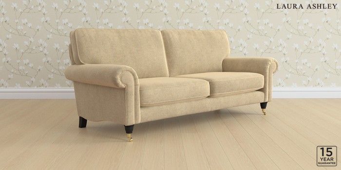 6.12.1 Buy Kingston by Laura Ashley 3 Seater Sofa Peyton Sable Natural Low Brass Castor - Black from the Laura Ashley online shop Click here to use our website with more accessibility support, for example screen readers