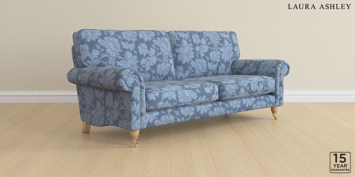 6.12.1 Buy Kingston by Laura Ashley 3 Seater Sofa Tamara Dusky Seaspray Blue Low Brass Castor - Light Oak from the Laura Ashley online shop Click here to use our website with more accessibility support, for example screen readers