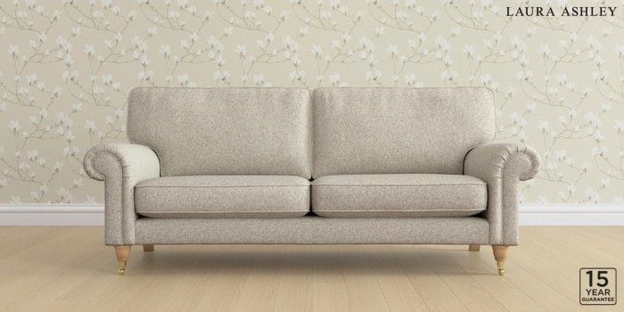 6.12.1 Buy Kingston by Laura Ashley 3 Seater Sofa Tichwell Stone Natural Low Brass Castor - Light Oak from the Laura Ashley online shop Click here to use our website with more accessibility support, for example screen readers