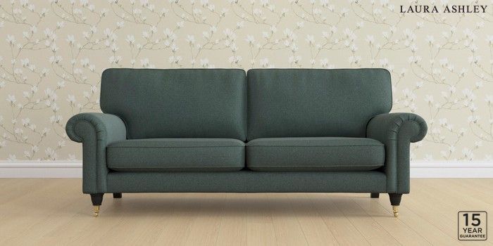 6.12.1 Buy Kingston by Laura Ashley 3 Seater Sofa Wooton Forest Green Low Brass Castor - Black from the Laura Ashley online shop Click here to use our website with more accessibility support, for example screen readers