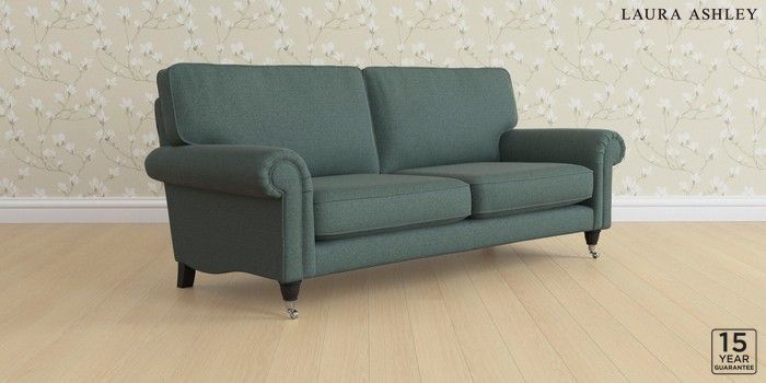 6.12.1 Buy Kingston by Laura Ashley 3 Seater Sofa Wooton Forest Green Low Chrome Castor - Black from the Laura Ashley online shop Click here to use our website with more accessibility support, for example screen readers