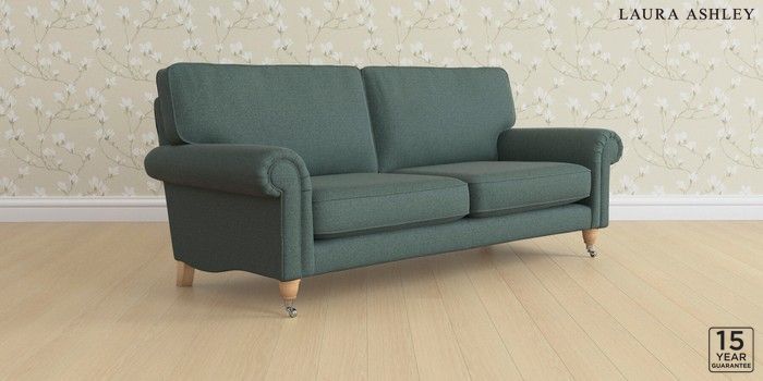 6.12.1 Buy Kingston by Laura Ashley 3 Seater Sofa Wooton Forest Green Low Chrome Castor - Light Oak from the Laura Ashley online shop Click here to use our website with more accessibility support, for example screen readers