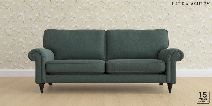6.12.1 Buy Kingston by Laura Ashley 3 Seater Sofa Wooton Forest Green Low Turned - Black from the Laura Ashley online shop Click here to use our website with more accessibility support, for example screen readers