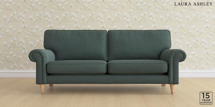 6.12.1 Buy Kingston by Laura Ashley 3 Seater Sofa Wooton Forest Green Low Turned - Light Oak from the Laura Ashley online shop Click here to use our website with more accessibility support, for example screen readers
